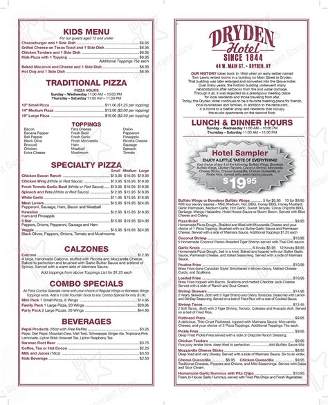 Dryden Hotel Menu. Web the dryden hotel specials. Book now restaurant & hotel along the.