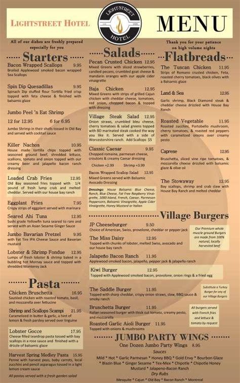 Lightstreet Hotel Menu. Our patio is now open! Web the lightstreet hotel | menu directions weekly specials tuesday: